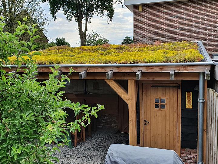 Heb je een schuin dak en wil je hier een prachtig groendak van maken? Dan is ons groendak lichthellendsysteem écht wat voor jou. Het groendak lichthellendsysteem is iets anders opgebouwd dan een normaal plat dak. Dat komt omdat bij een schuin dak het water sneller van het dak loopt, hierdoor is een dikkere substraatlaag nodig! De substraatlaag geeft de perfecte hoeveelheid voeding die de sedummixmat nodig heeft. Jouw groendak blijft hierdoor mooi groen!