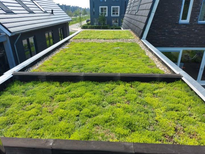 - De sedumplantjes kunnen veel water vasthouden en dit zorgt voor minder wateroverlast